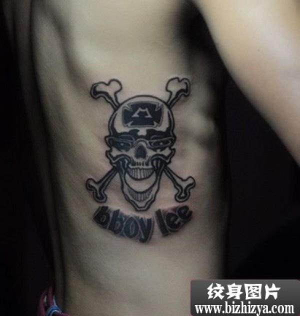 男人腰部邪恶骷髅英文刺青图案图片_骷髅纹身图案大全_纹身图吧