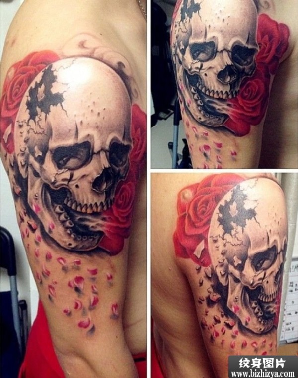 手臂骷髅菊花纹身_骷髅纹身图案大全_纹身图吧