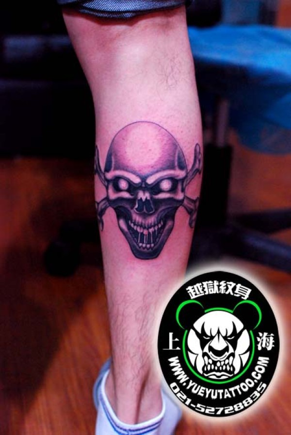 腿部骷髅头纹身图案上海越狱纹身店作品_骷髅纹身图案大全_纹身图吧