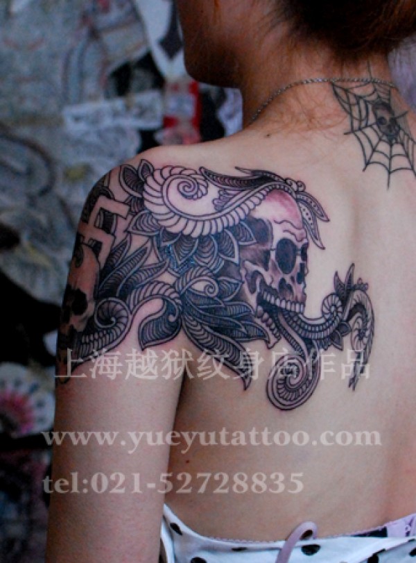 肩部五芒星骷髅纹身_骷髅纹身图案大全_纹身图吧