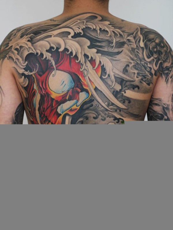 满背欧美写实骷髅纹身_骷髅纹身图案大全_纹身图吧