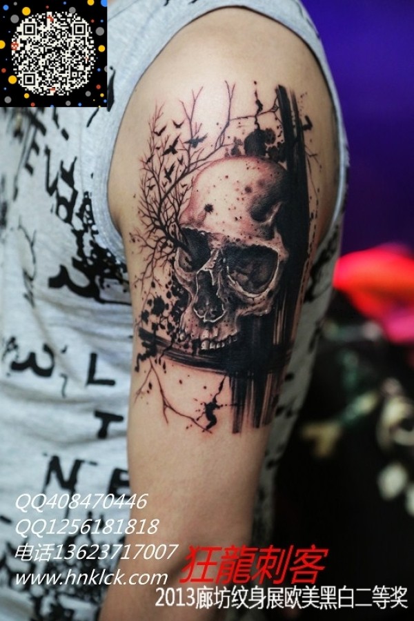 一款时尚霸气的大臂骷髅纹身图案_骷髅纹身图案大全_纹身图吧