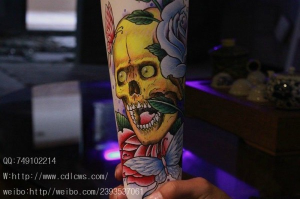 手臂骷髅菊花纹身_骷髅纹身图案大全_纹身图吧