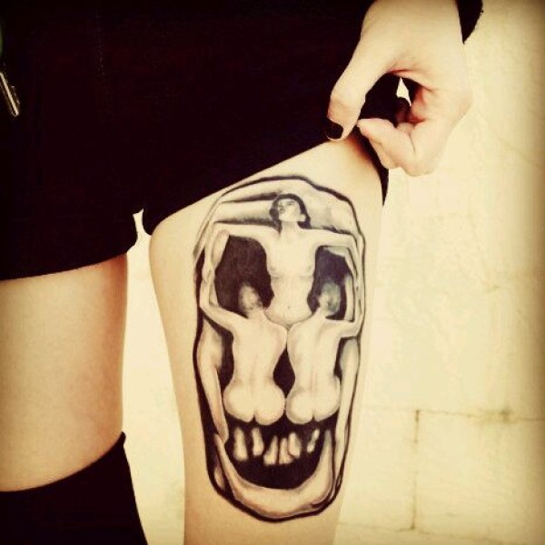 推荐一款潮流时尚的大腿骷髅纹身图案_骷髅纹身图案大全_纹身图吧