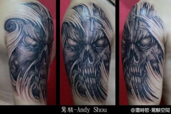 肩部五芒星骷髅纹身_骷髅纹身图案大全_纹身图吧