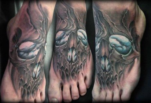 脚背很帅时尚的一款骷髅纹身图案_骷髅纹身图案大全_纹身图吧