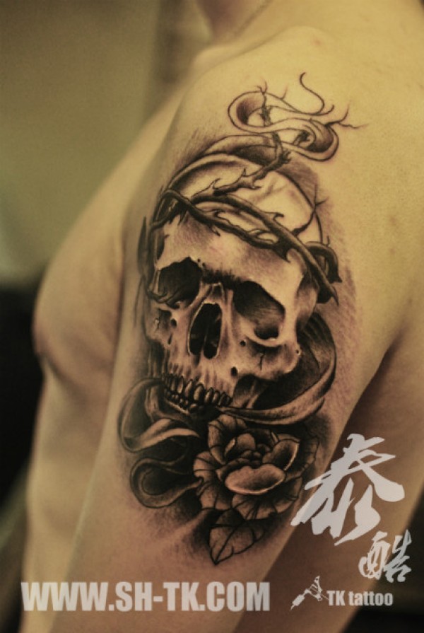肩部五芒星骷髅纹身_骷髅纹身图案大全_纹身图吧