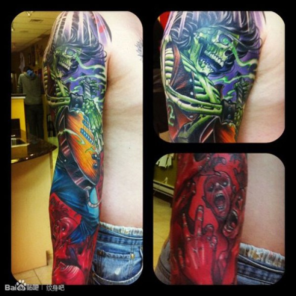 手臂很酷帅气的弹吉他的骷髅纹身图案_骷髅纹身图案大全_纹身图吧
