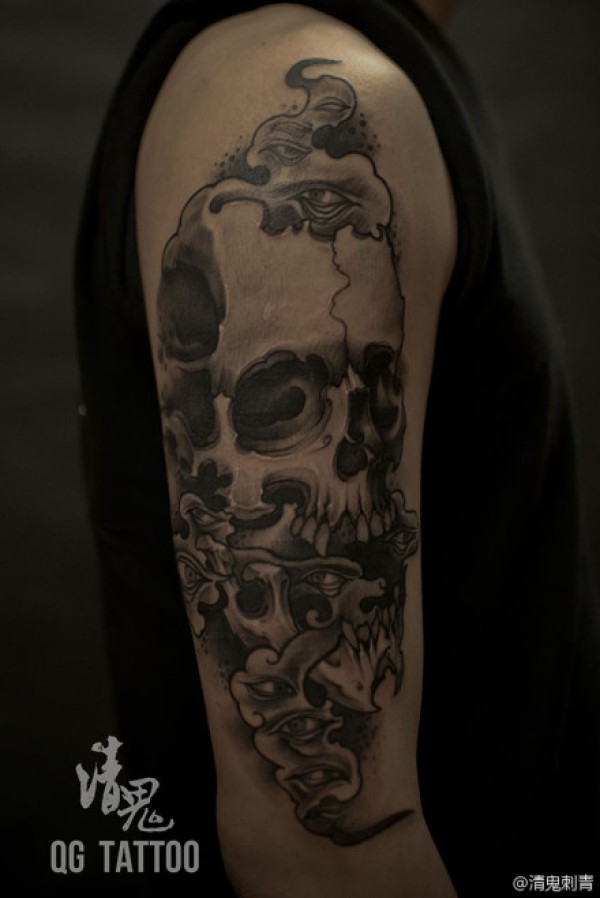 手臂潮流很酷的黑灰骷髅纹身图案_骷髅纹身图案大全_纹身图吧
