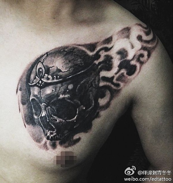 男人前胸时尚很酷的骷髅纹身图案_骷髅纹身图案大全_纹身图吧