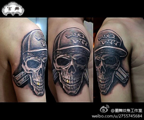 肩部五芒星骷髅纹身_骷髅纹身图案大全_纹身图吧