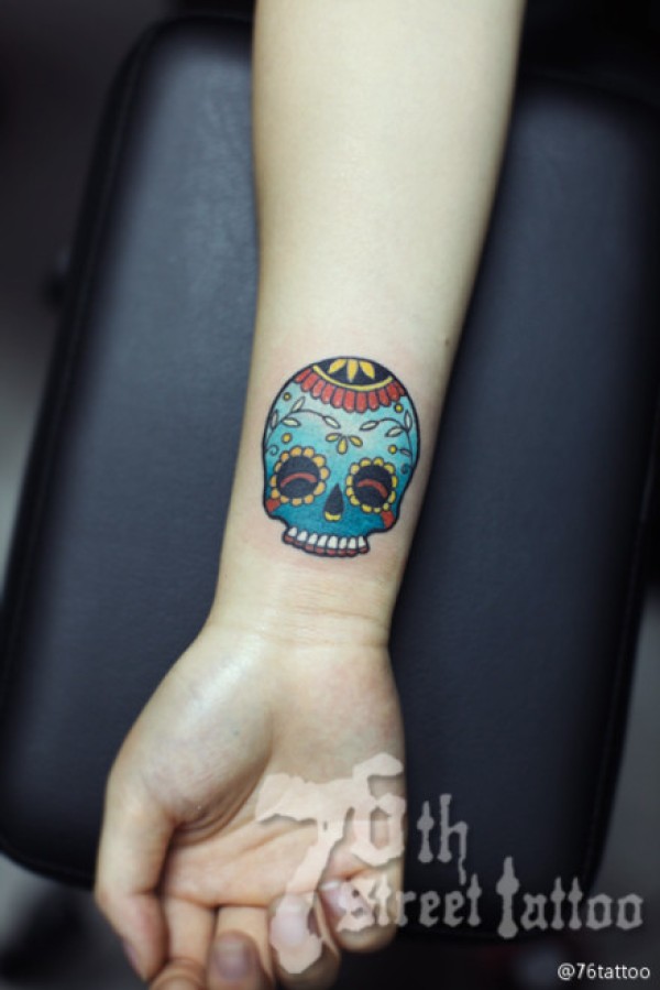 女生手腕好看精美的骷髅纹身图案_骷髅纹身图案大全_纹身图吧