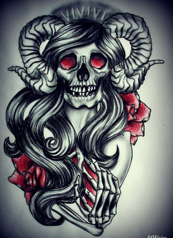 时尚很酷的一款女版的骷髅纹身图案_骷髅纹身图案大全_纹身图吧