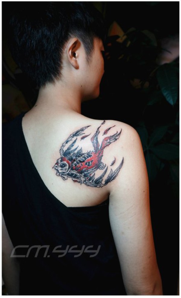 肩背一款另类很酷的骷髅燕子纹身图案_骷髅纹身图案大全_纹身图吧