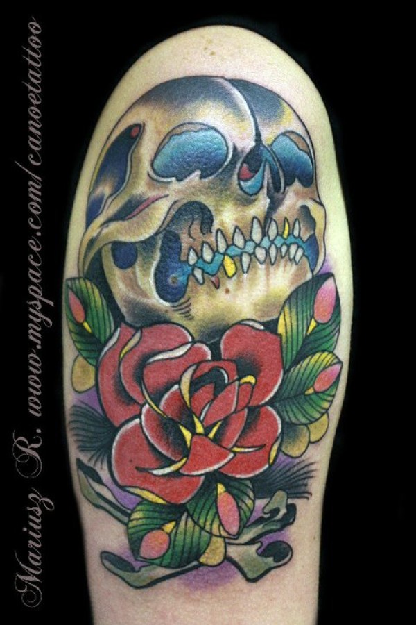 手臂骷髅菊花纹身_骷髅纹身图案大全_纹身图吧