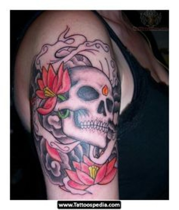 推荐一款潮流时尚的大臂骷髅纹身图案_骷髅纹身图案大全_纹身图吧