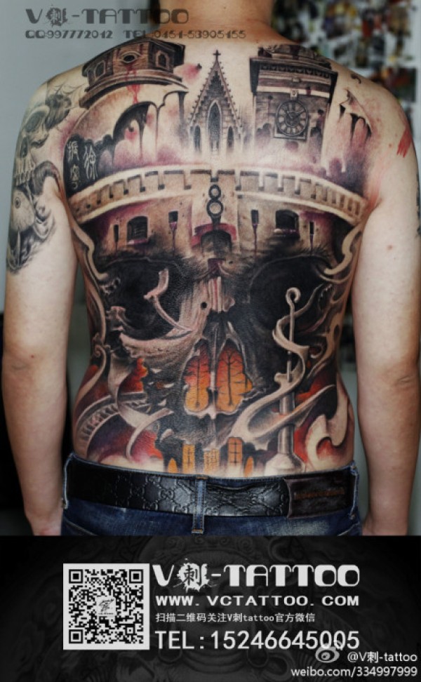 满背欧美写实骷髅纹身_骷髅纹身图案大全_纹身图吧