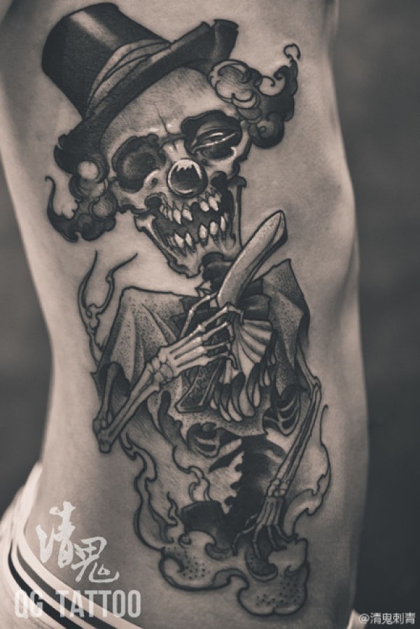 侧要时尚很帅的一款小丑骷髅纹身图案_骷髅纹身图案大全_纹身图吧