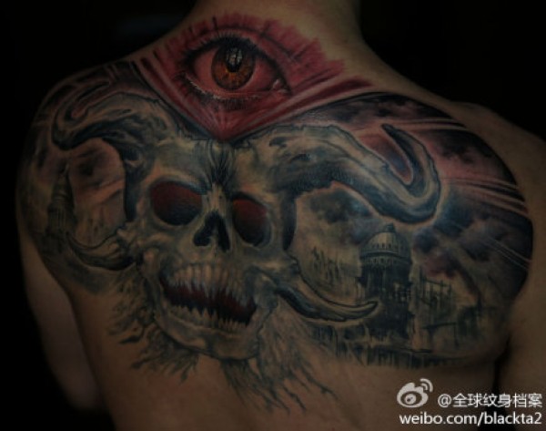 满背欧美写实骷髅纹身_骷髅纹身图案大全_纹身图吧