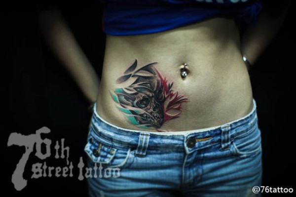女生腹部时尚很酷的骷髅纹身图案_骷髅纹身图案大全_纹身图吧