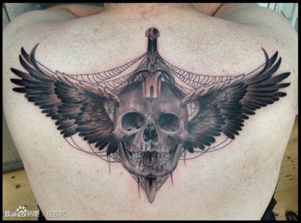 背部骷髅翅膀纹身_骷髅纹身图案大全_纹身图吧