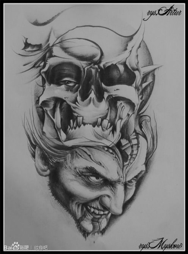 时尚很酷的黑灰欧美骷髅纹身图案_骷髅纹身图案大全_纹身图吧