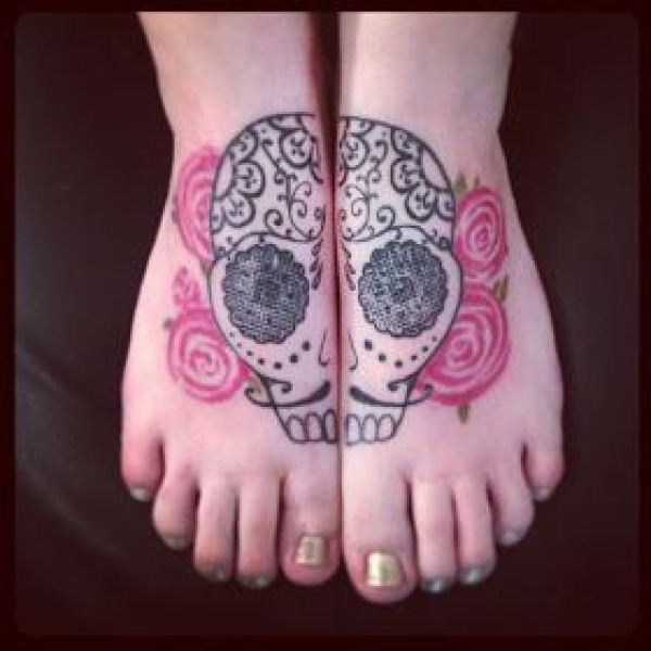 推荐一款女人时尚经典的脚背骷髅纹身图案_骷髅纹身图案大全_纹身图吧