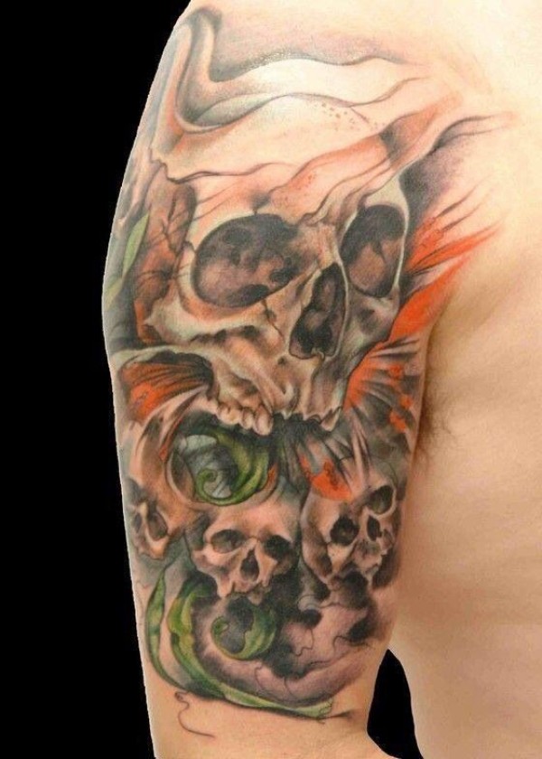 男人一款霸气好看的大臂骷髅纹身图案_骷髅纹身图案大全_纹身图吧