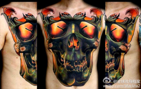 男人前胸霸气超帅的骷髅纹身图案_骷髅纹身图案大全_纹身图吧
