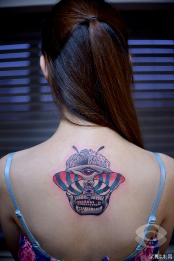 美女后背唯美另类的骷髅纹身图案_骷髅纹身图案大全_纹身图吧