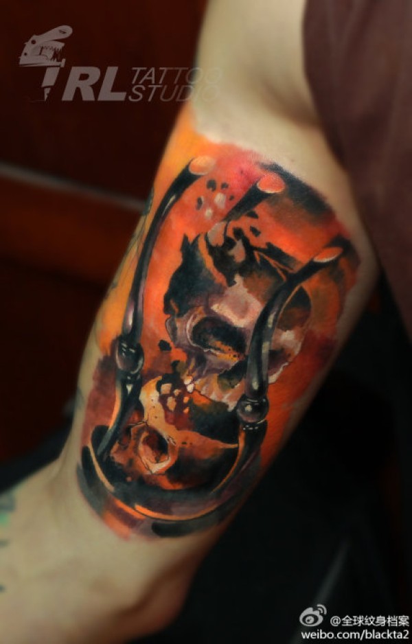手臂内侧一款超帅色骷髅沙漏纹身图案_骷髅纹身图案大全_纹身图吧