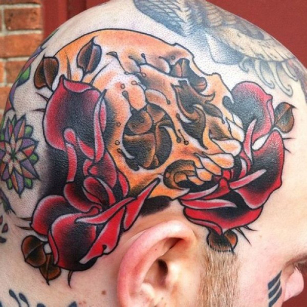 男人头部很酷帅气的骷髅纹身图案_骷髅纹身图案大全_纹身图吧