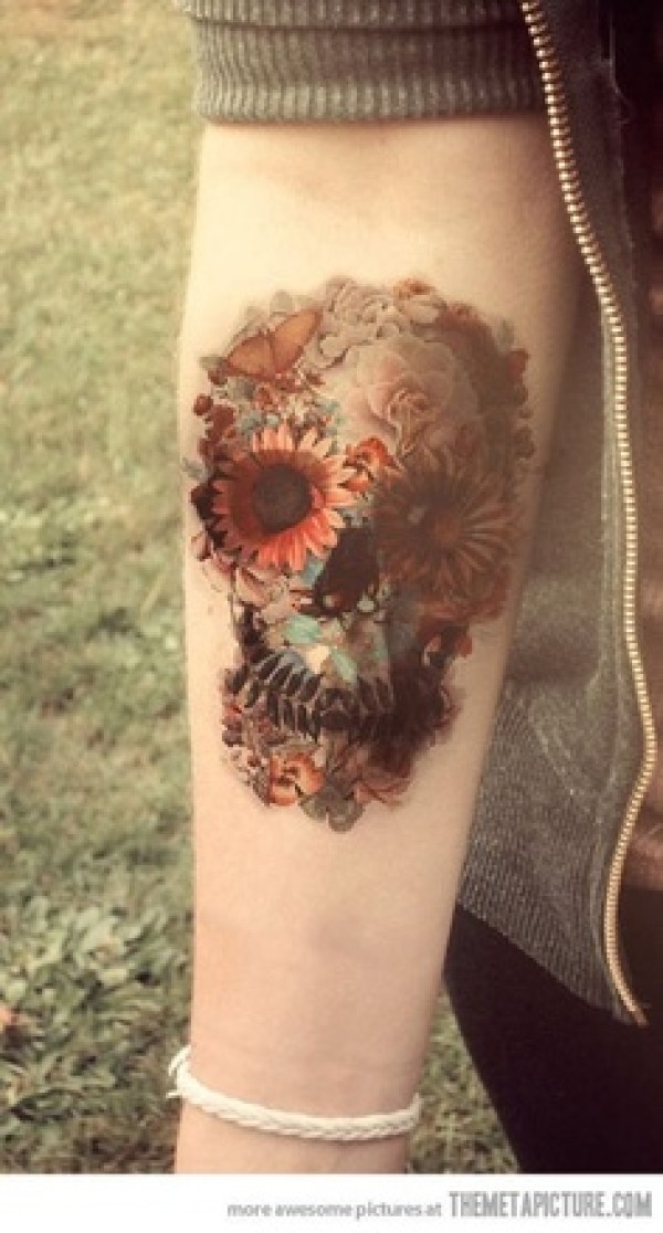 手臂骷髅菊花纹身_骷髅纹身图案大全_纹身图吧