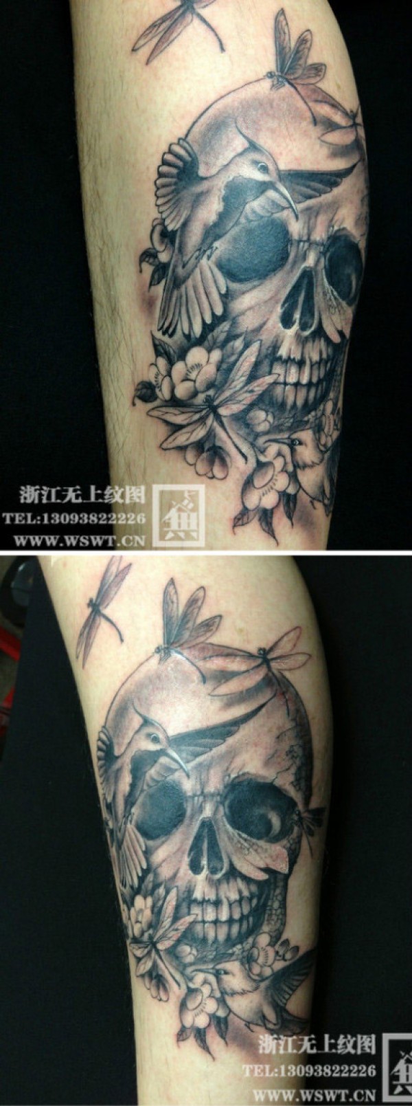 男人腿部很酷帅气的骷髅纹身图案_骷髅纹身图案大全_纹身图吧