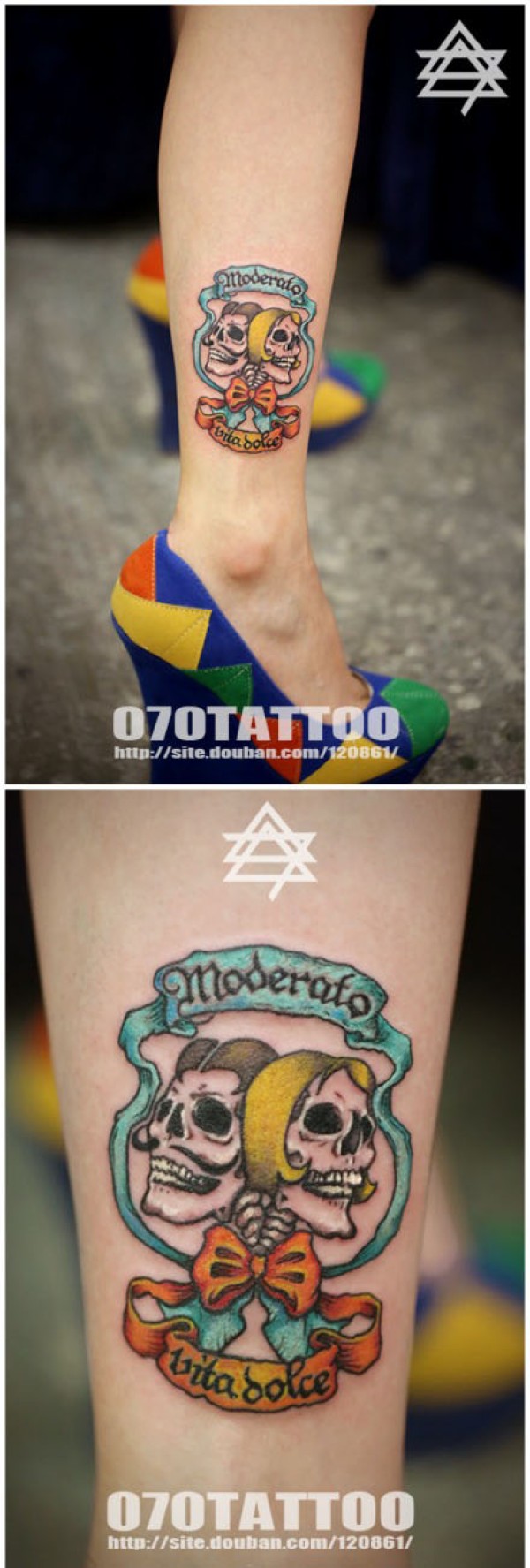 女生腿部潮流经典的骷髅纹身图案_骷髅纹身图案大全_纹身图吧