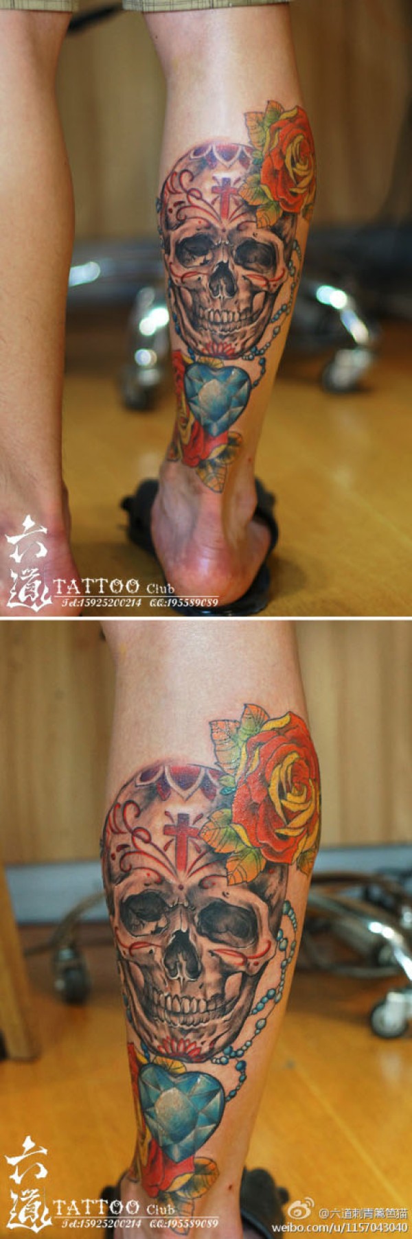 男生腿部时尚很酷的欧美骷髅纹身图案_骷髅纹身图案大全_纹身图吧