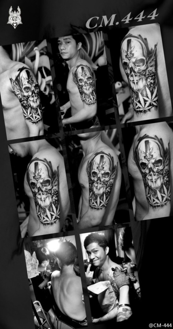 手臂骷髅菊花纹身_骷髅纹身图案大全_纹身图吧