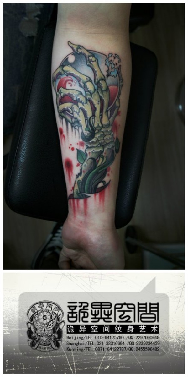 手臂时尚很酷的骷髅手纹身图案_骷髅纹身图案大全_纹身图吧