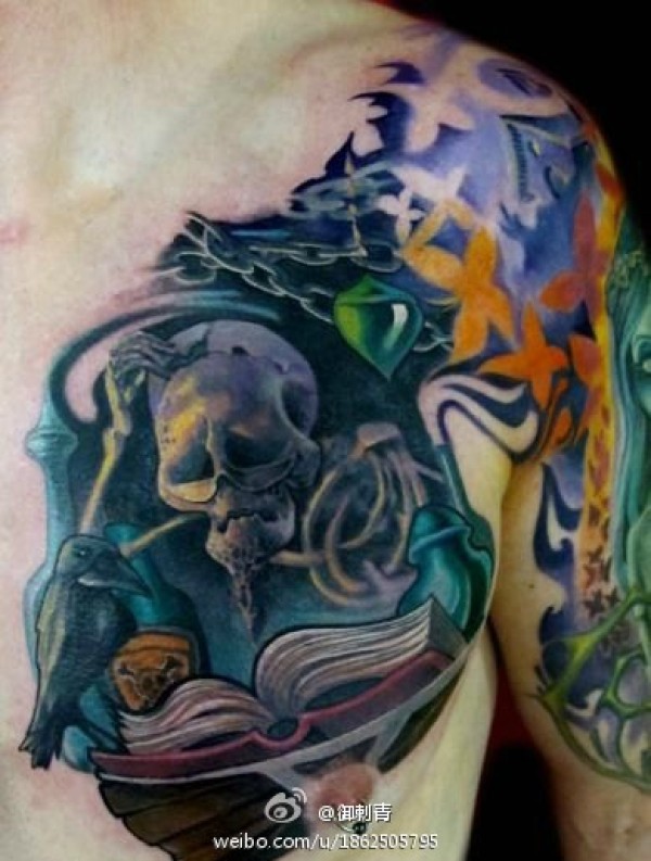 肩部五芒星骷髅纹身_骷髅纹身图案大全_纹身图吧