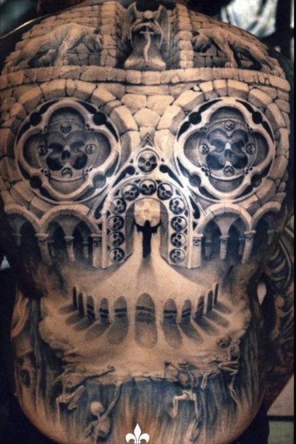 满背欧美写实骷髅纹身_骷髅纹身图案大全_纹身图吧
