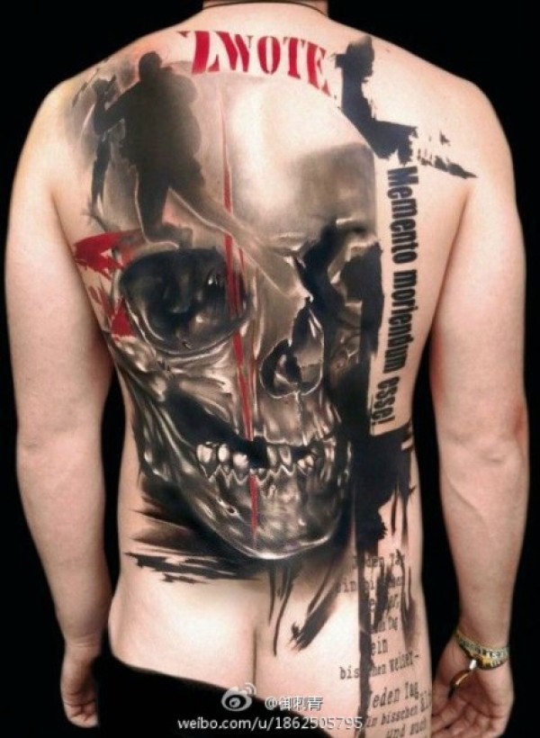 满背欧美写实骷髅纹身_骷髅纹身图案大全_纹身图吧