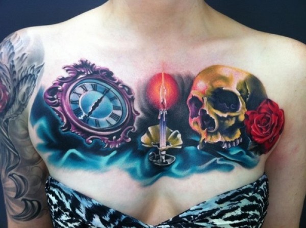 分享一款胸前彩色骷髅纹身图案_骷髅纹身图案大全_纹身图吧