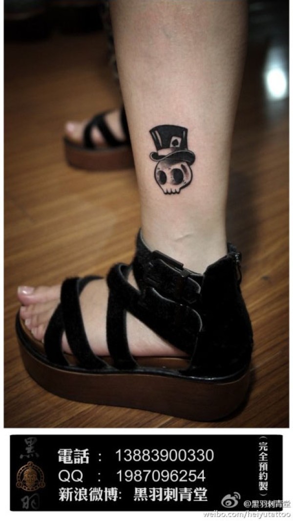 女生腿部一款小巧可爱的骷髅纹身图案_骷髅纹身图案大全_纹身图吧