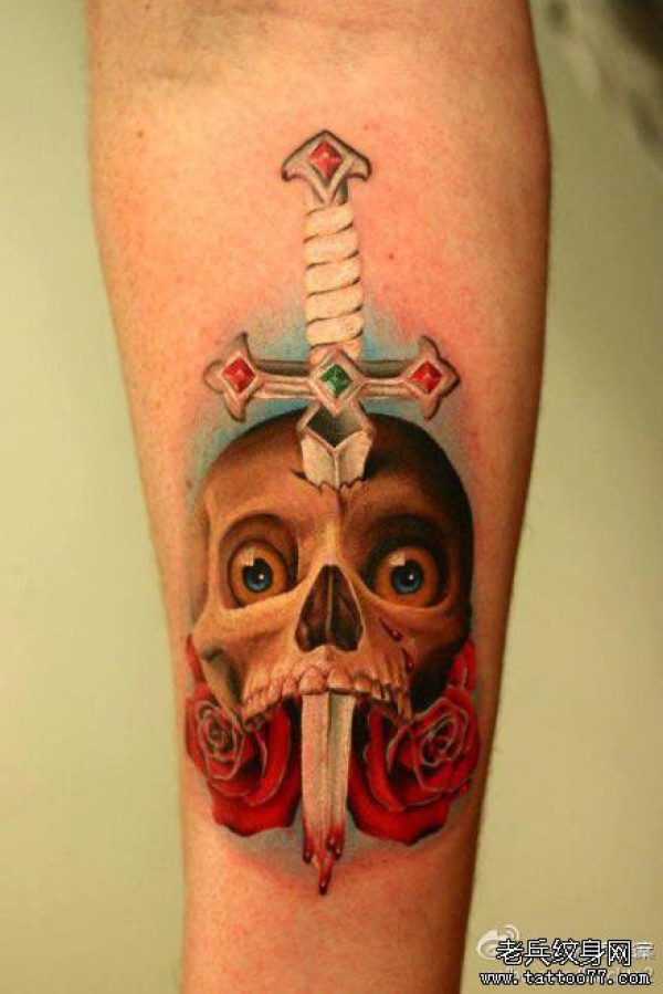 手臂一款超酷经典的匕首与骷髅纹身图案_骷髅纹身图案大全_纹身图吧