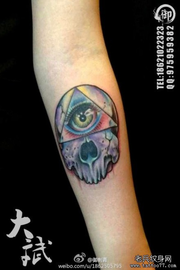 手臂超酷的三角眼睛与骷髅纹身图案_骷髅纹身图案大全_纹身图吧