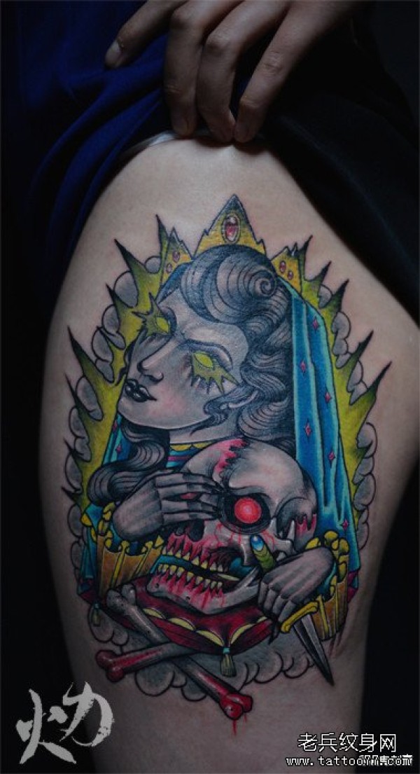 腿部漂亮的欧美美女与骷髅纹身图案_骷髅纹身图案大全_纹身图吧