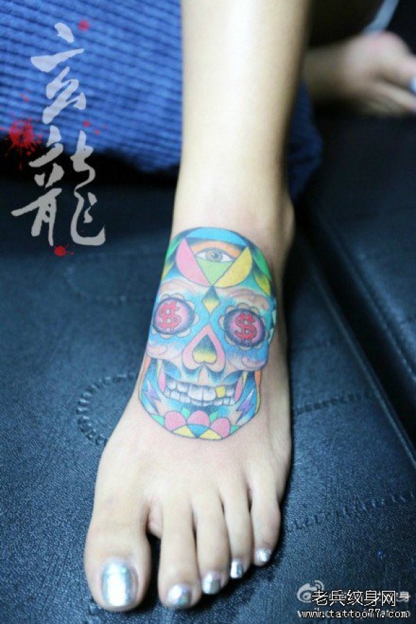 美女脚背潮流精美的花骷髅纹身图案_骷髅纹身图案大全_纹身图吧