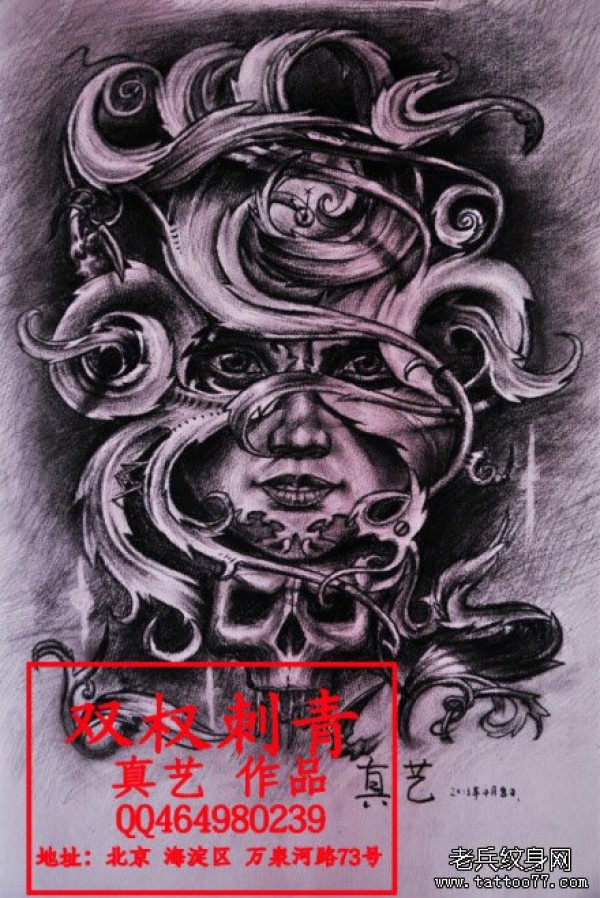 一款潮流时尚的欧美骷髅与美女纹身图案_骷髅纹身图案大全_纹身图吧