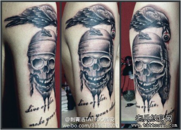 手臂潮流经典的一款乌鸦与骷髅纹身图案_骷髅纹身图案大全_纹身图吧