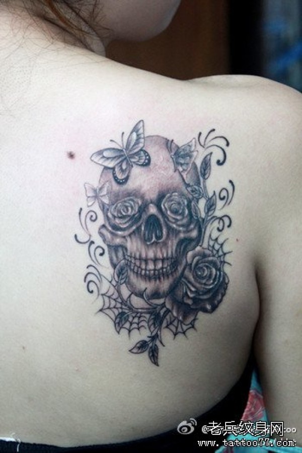 女生肩背潮流唯美的欧美骷髅纹身图案_骷髅纹身图案大全_纹身图吧